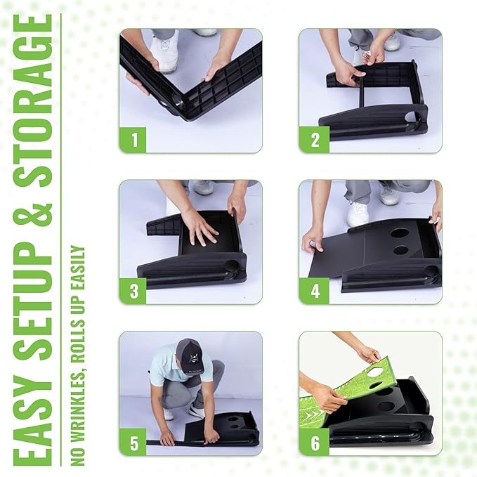 - Portable & Easy to Store – Perfect for Any Space: This green indoor setting is lightweight and easy to roll up, making storage effortless. Whether you need a golf practice putting green for your home, office or backyard, the quick setup and compact design let you train anywhere