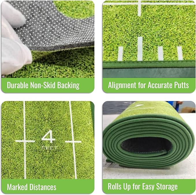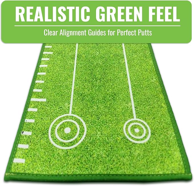 - Premium Putting Green Indoor for Training: Designed for home, office and outdoor use, this indoor putting green replicates real course conditions with alignment guides and distance markers. Perfect for putting practice indoor, it helps golfers develop precision and consistency in their short game